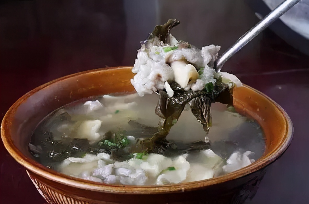 2. Put a little oil in the net pot, stir-fry the next winter vegetable pieces, mix in an appropriate amount of water, boil and cook for a while, then pull the dough into noodles and put it into the soup, then shake the mixed meat pieces into the The soup is boiled into smooth meat, and finally seasoned with salt and MSG. After the pot is filled with a bowl, sprinkle with chopped green onion to prepare a dish.