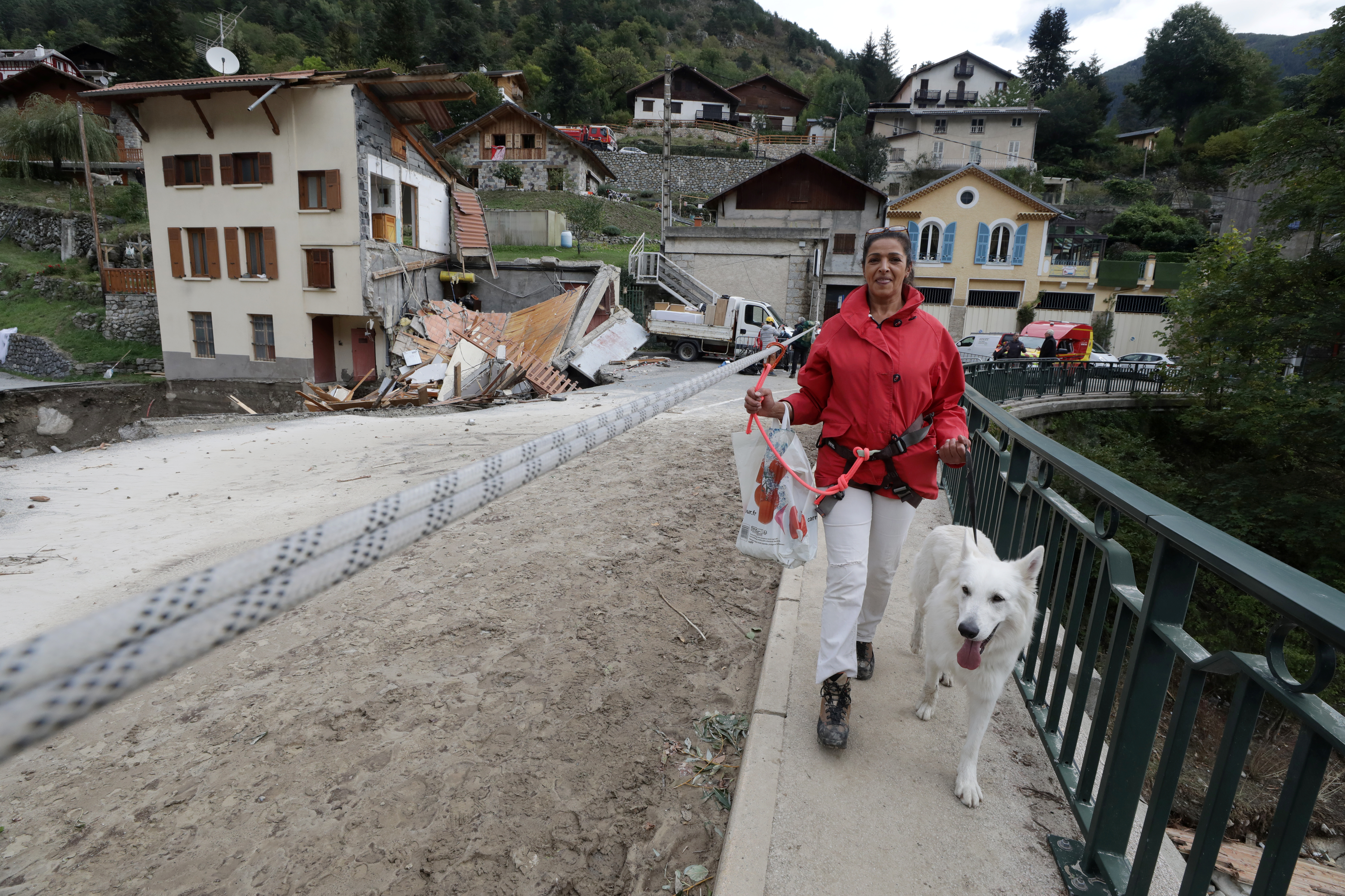 Xinhua News Agency photo, Waidai, October 6, 2020 (the first line of foreign generations) (15) France was flooded on October 6, in the French town of Saint-Martin-Vessupy, a woman went through a damaged car with a zip line bridge. The areas on the border between France and Italy have recently experienced heavy rains and floods, and some mountainous areas have experienced landslides. Xinhua News Agency/Reuters