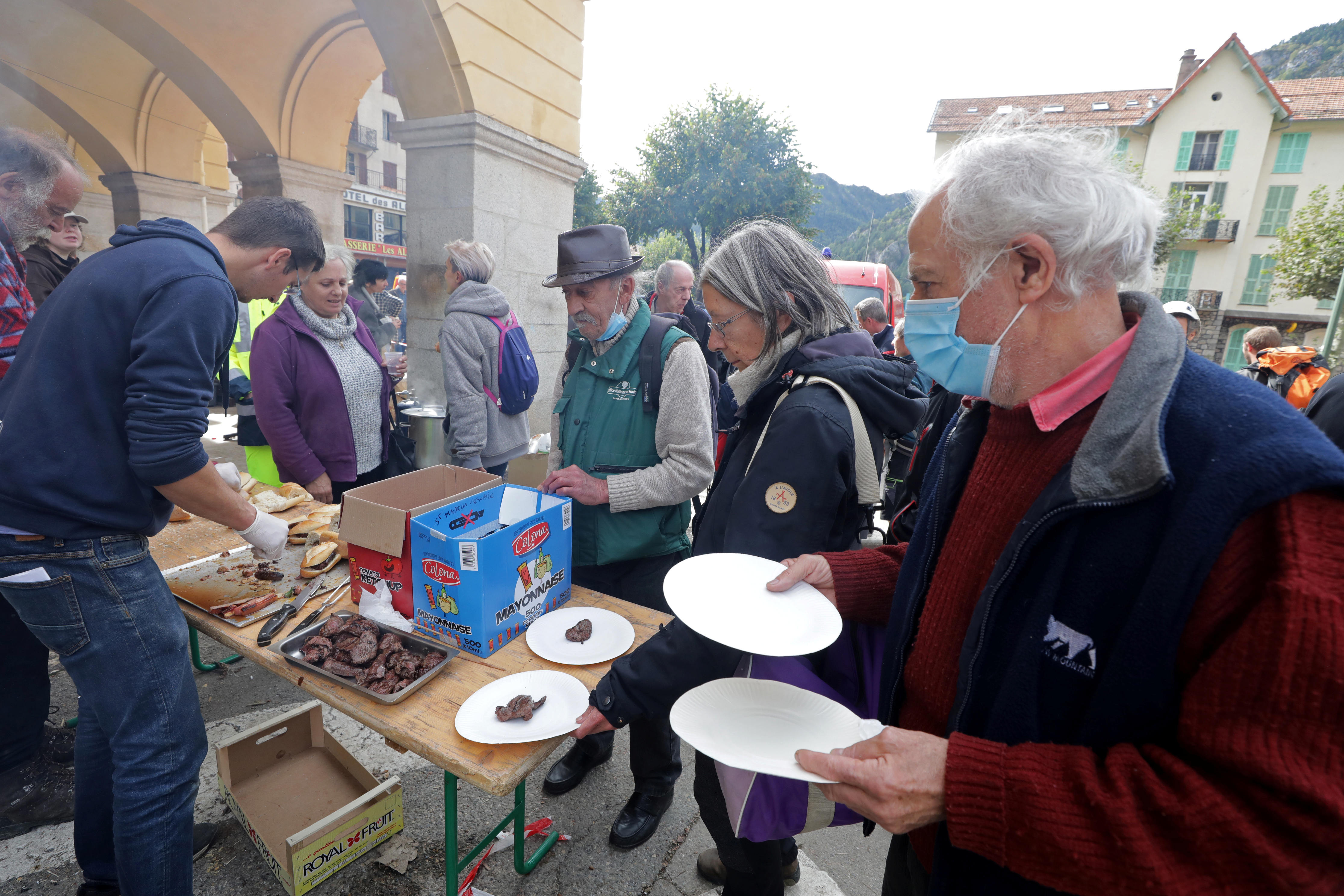 Photo by Xinhua News Agency, Waidai, October 6, 2020 (the frontline of the Waidai) (17) France was flooded on October 6, in the French town of Saint-Martin-Vessup, residents were waiting for food. The areas on the border between France and Italy have recently experienced heavy rains and floods, and some mountainous areas have experienced landslides. Xinhua News Agency/Reuters
