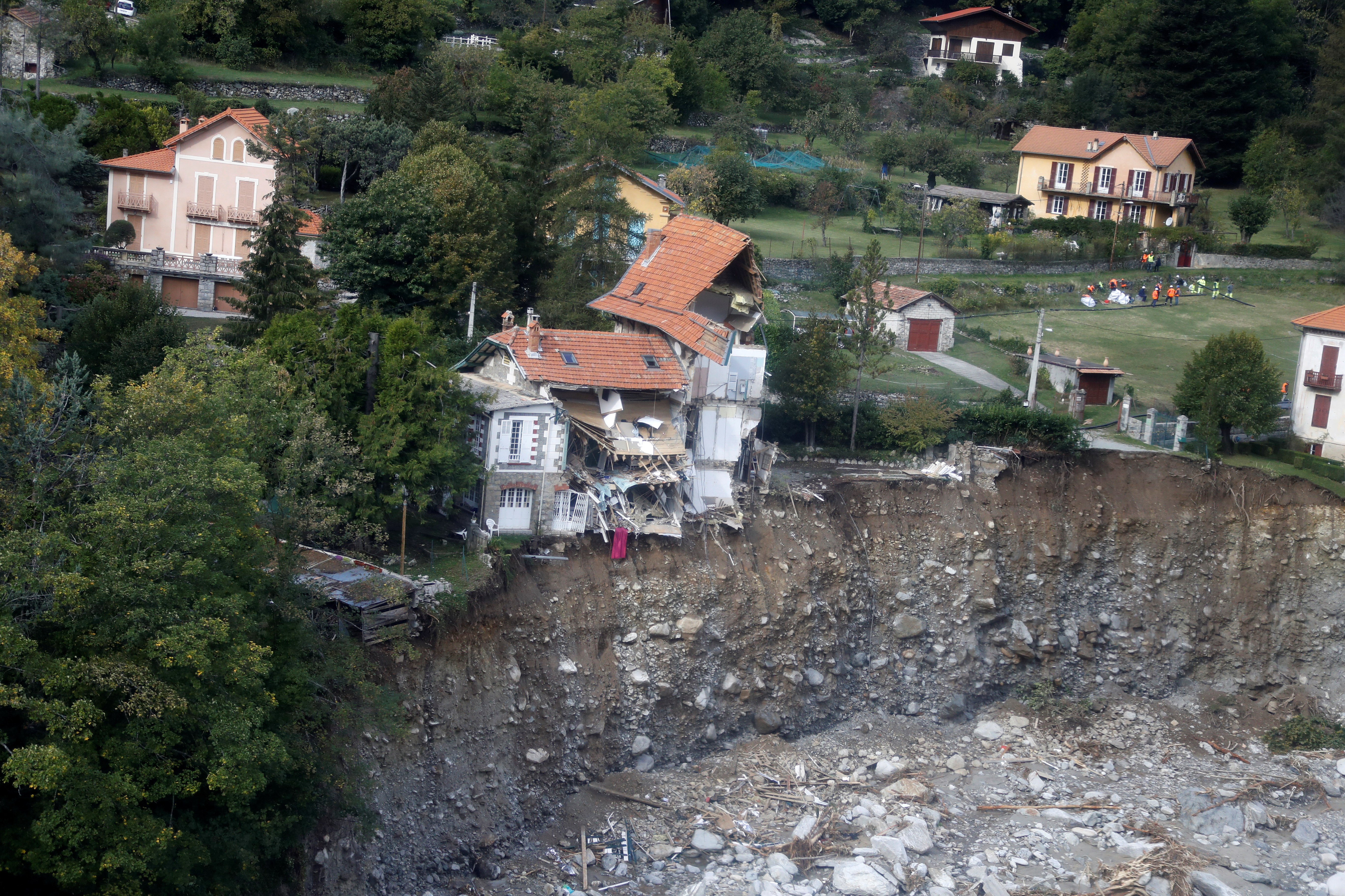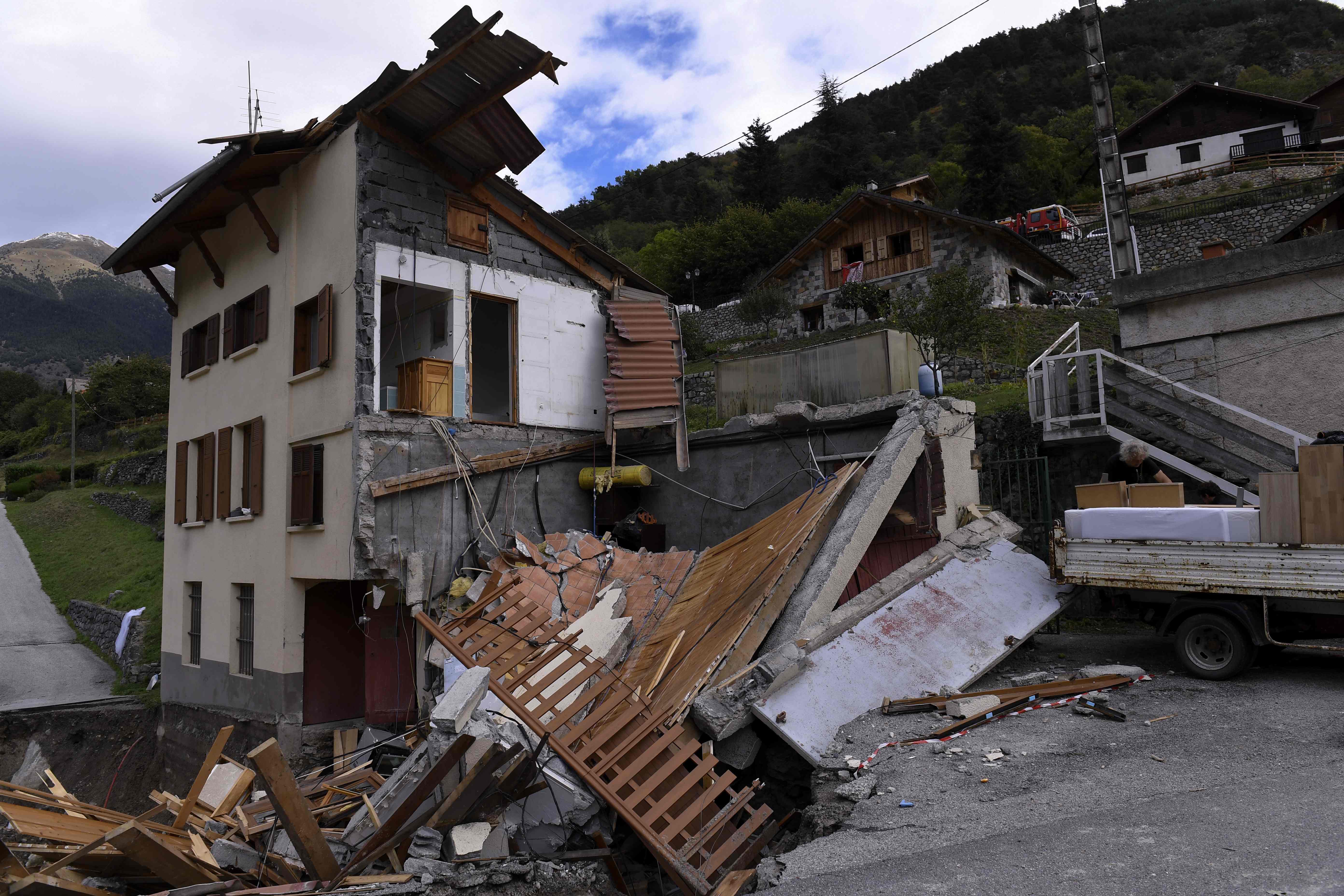 Photo by Xinhua News Agency, Waidai, October 6, 2020 (Foreign generation frontline) (3) Flooding in France On October 6, in the French town of Saint-Martin-Vessup, rescuers stood by the houses destroyed by the flood . The areas on the border between France and Italy have recently experienced heavy rains and floods, and some mountainous areas have experienced landslides. Xinhua News Agency/AFP