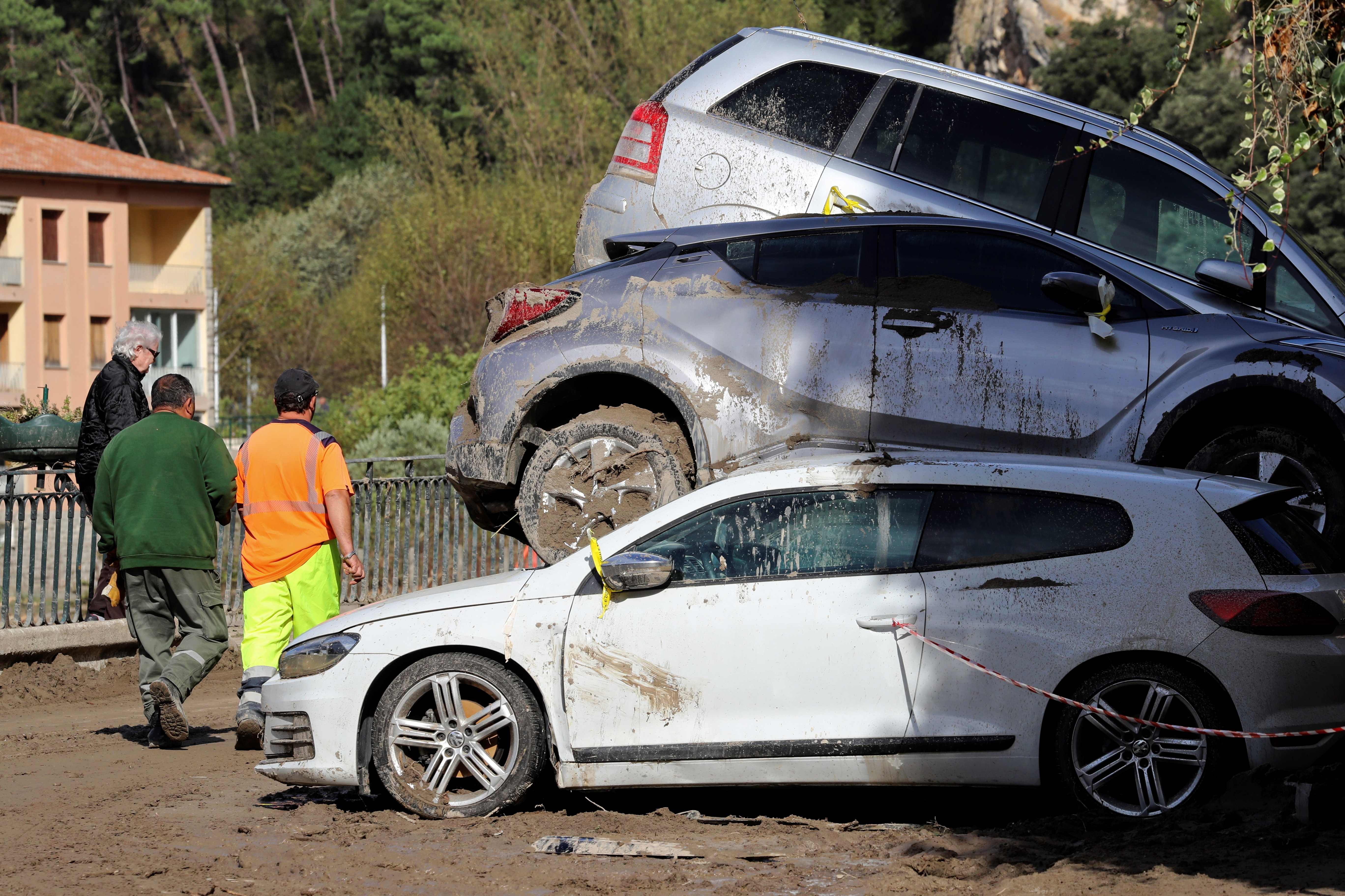 Photo by Xinhua News Agency, Waidai, October 6, 2020 (Foreign generation frontline) (10) Flooding in France On October 5, people passed by flood-damaged vehicles in Brey-sur-Royat near the border with Italy. The areas on the border between France and Italy have recently experienced heavy rains and floods, and some mountainous areas have experienced landslides. Xinhua News Agency/AFP