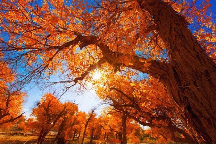 Populus euphratica can be admired in autumn, colorful
