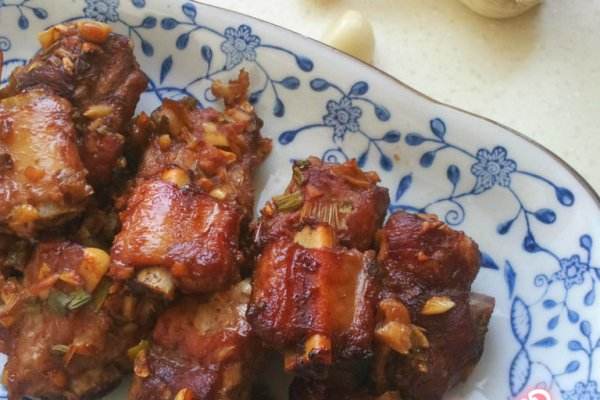 Ingredients: 1000g pork ribs, 600ml oil, 100g garlic, 30ml white wine, 20g oyster sauce, 25g barbecued pork sauce, 25g pork rib sauce, 15g light soy sauce, 30g honey, 5g pepper, 15g cooking wine Ml