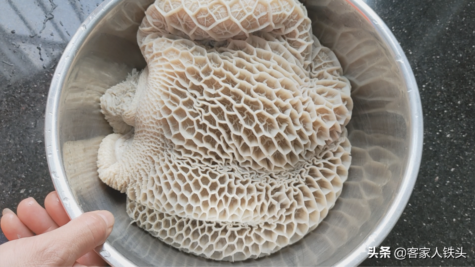 The first step: prepare a money belly and put it in a large plate, add a bowl of flour, hold it with your hands for about three or four minutes, and then rinse it with water. After rinsing, add two spoons of salt and 3 spoons of white vinegar, and put it again Scratch and wash. The tripe is much cleaner than the pork belly for about three or four minutes, so it’s not that troublesome to clean it. Rinse it with water after it’s done.